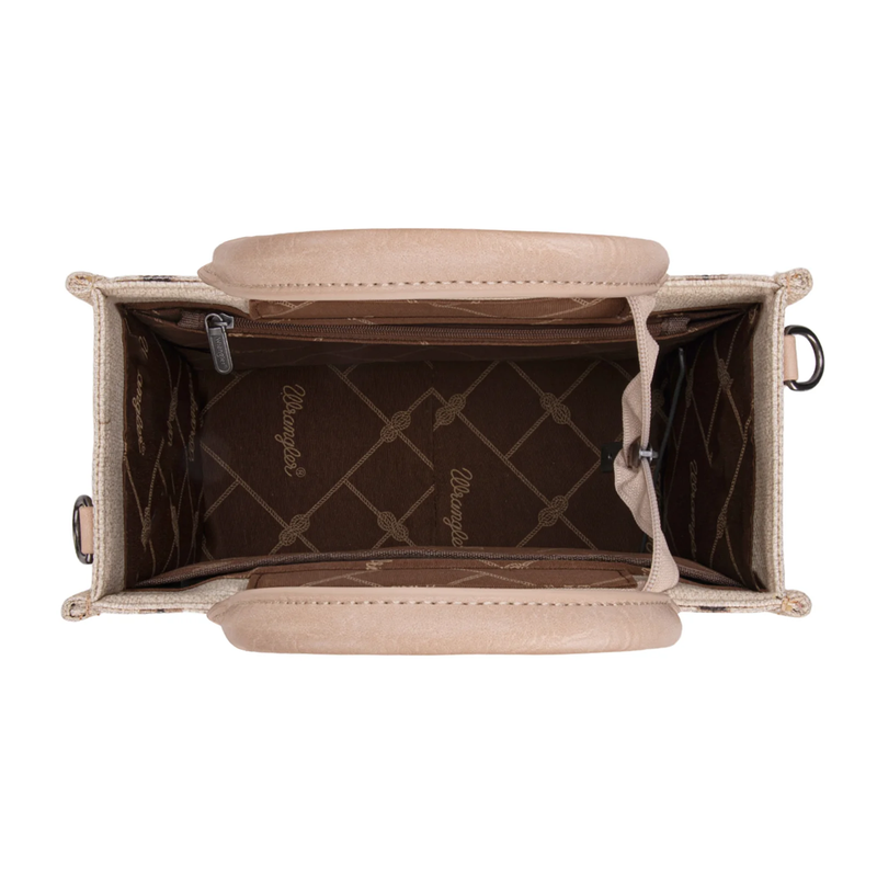 WG226-8120STN Wrangler Southwestern Pattern Dual Sided Print Tote Crossbody Bag - Tan