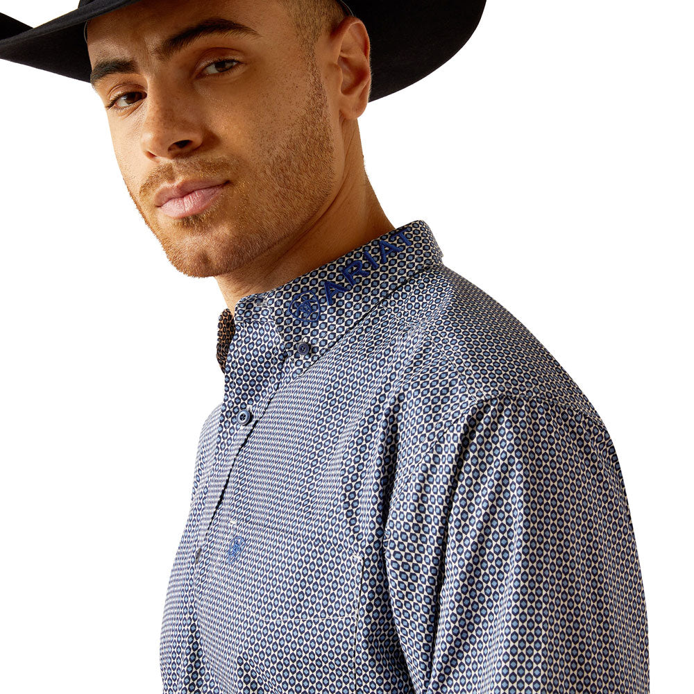 Ariat Men's Team Keenan Classic Fit Long Sleeve Buttondown Shirt in Blue/Navy