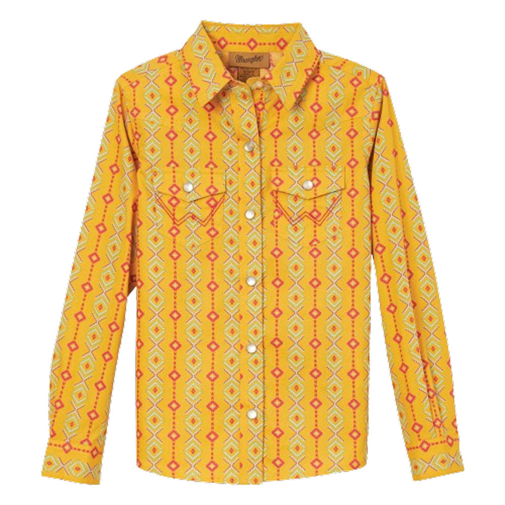 Wrangler Girls Long Sleeve Western Snap Shirt in Burgundy Plaid Girls Western shirt Long sleeve Spread collar Snap...