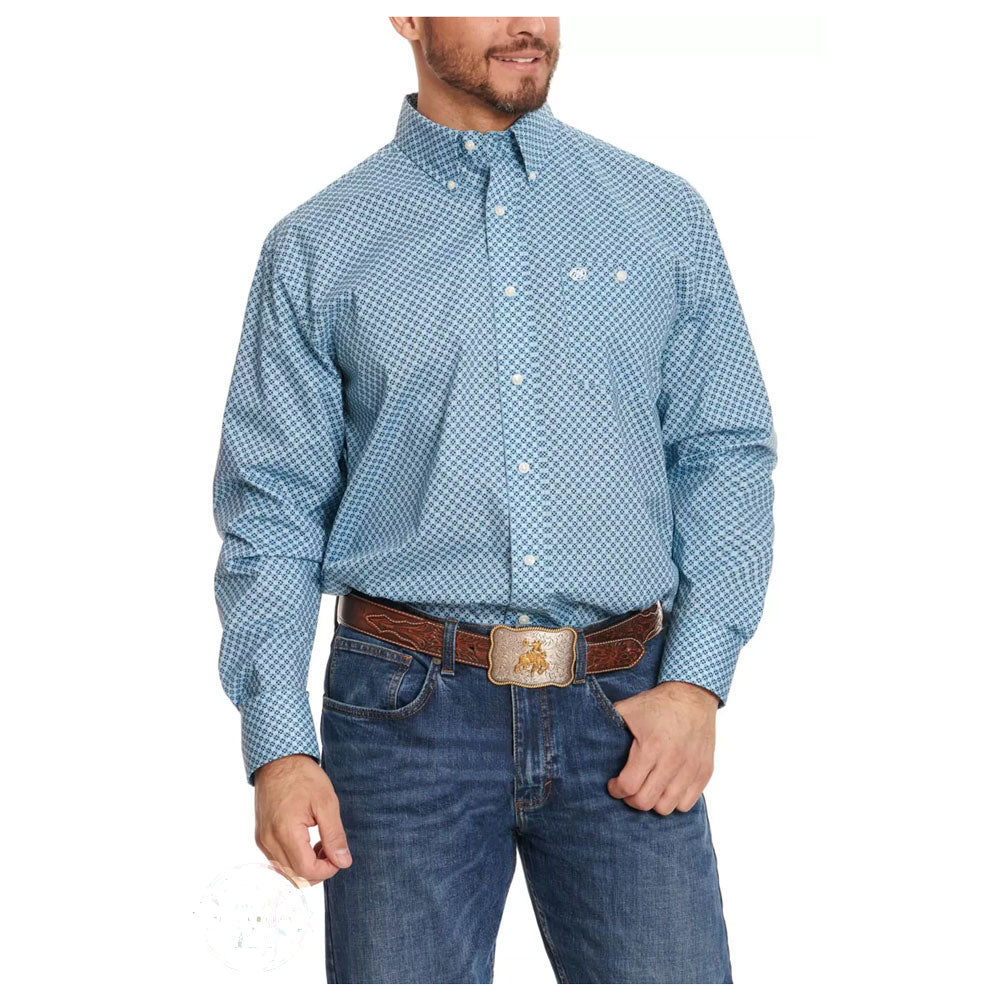Wrangler Men's George Strait Long Sleeve Buttondown Western Shirt in Cerulean Plaid. Relaxed fit Long sleeve Button down...