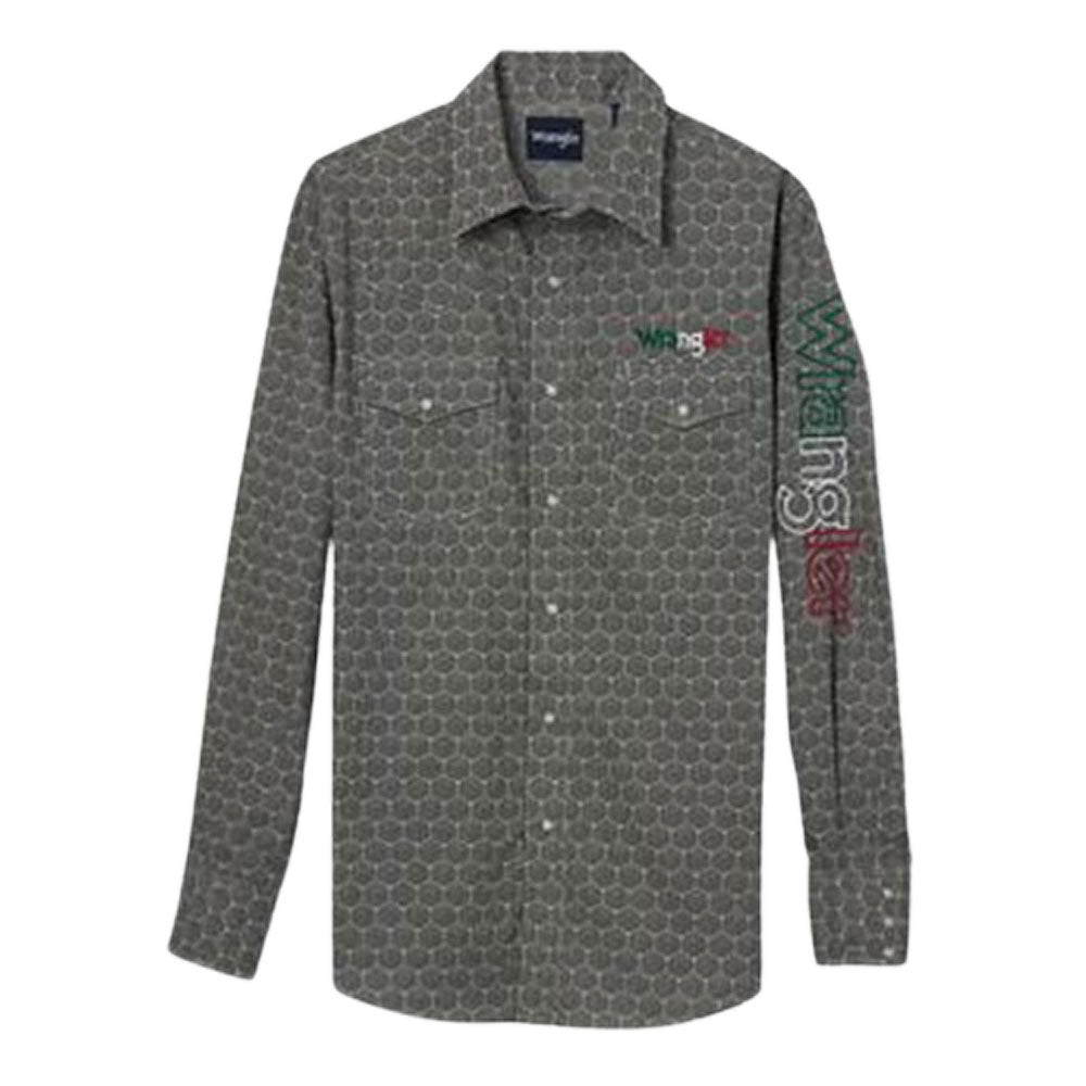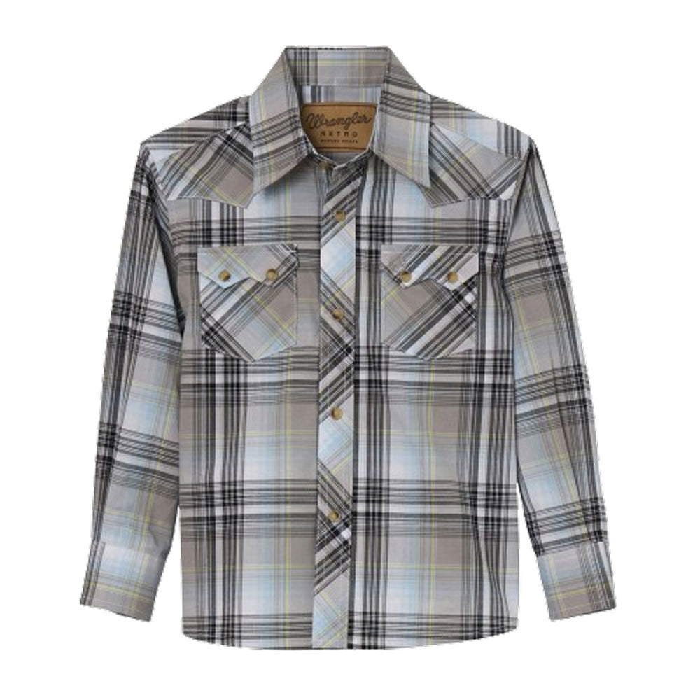 Wrangler Men's Retro Premium Long Sleeve Snap Shirt in Pale Grey Men's Western shirt Slim fit Long sleeve...