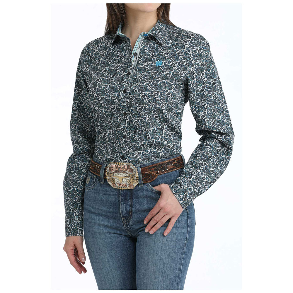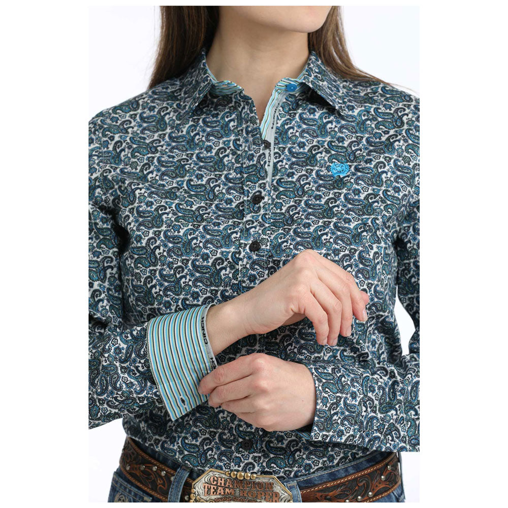 MSW9165081 Cinch Women's Long Sleeve Western Button down Shirt - Blue Paisley