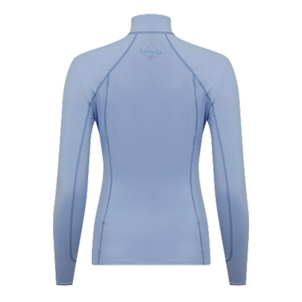 My LeMieux Ladies Base Layer Quarter Zip Long Sleeve Shirt in Mist. Stretchy, versatile and offered in new colors, the My LeMieux® Base Layer maintains a comfortable climate as a standalone top or when covered with a sweatshirt or vest.