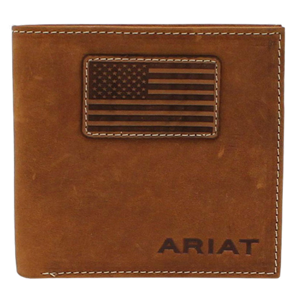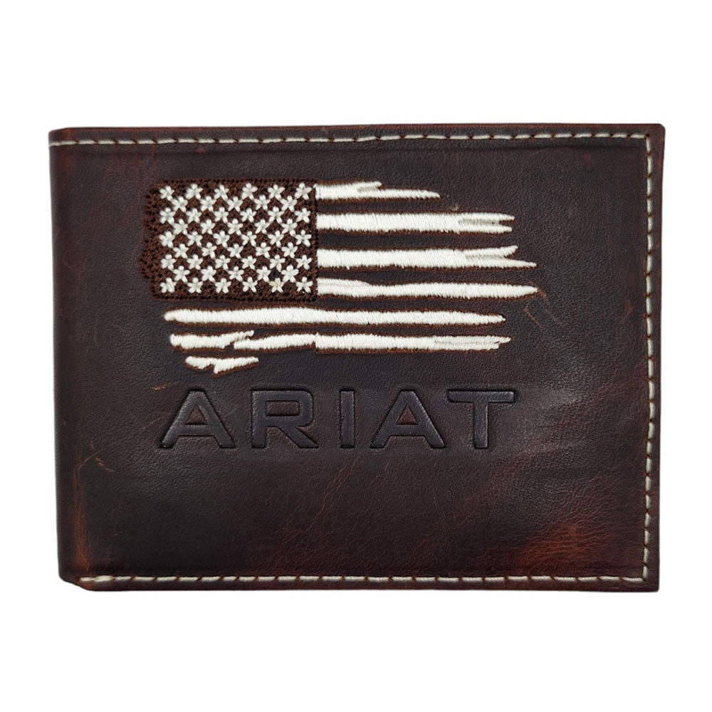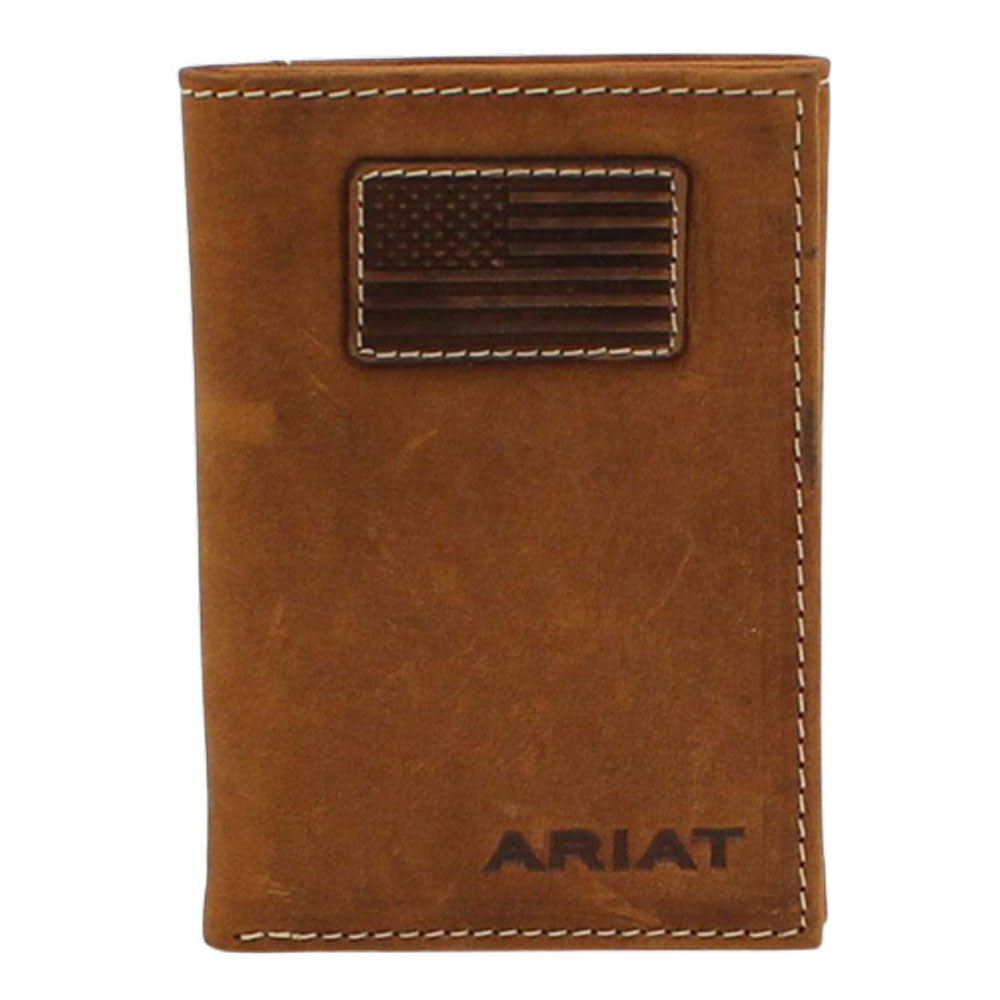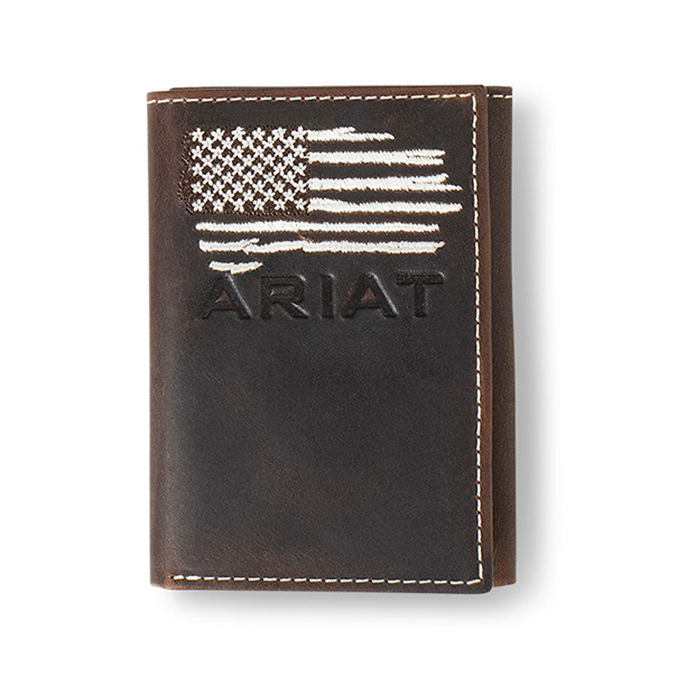 Ariat Men's Trifold USA Flag & Logo Leather Wallet Ariat Mens Wallet Brown Measures: 3 x 4-1/4 Trifold...