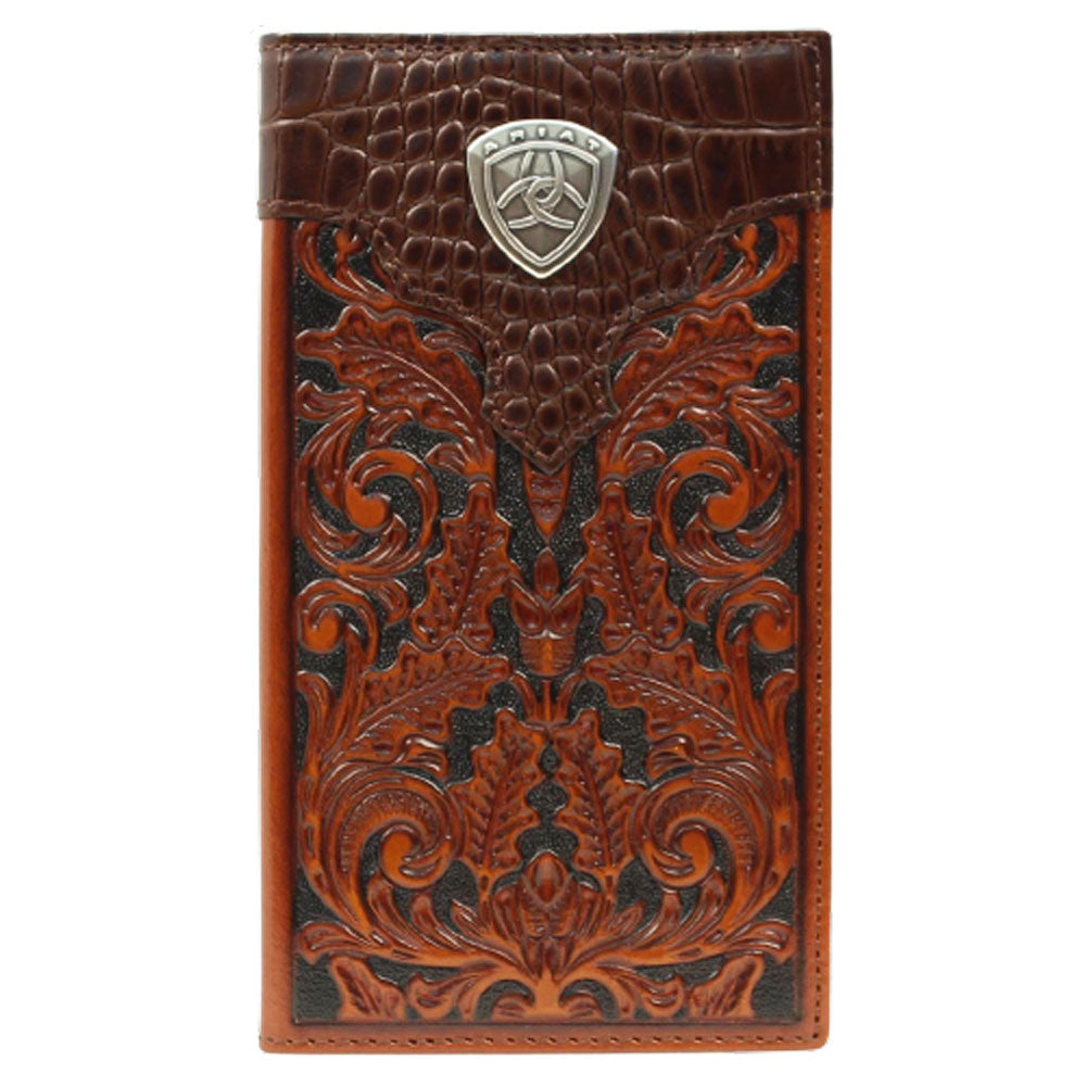 Ariat Men's Premium Brand Leather Rodeo Wallet Rodeo Wallet Oak Embossed Design Alligator Print Top Ariat Brand Concho...