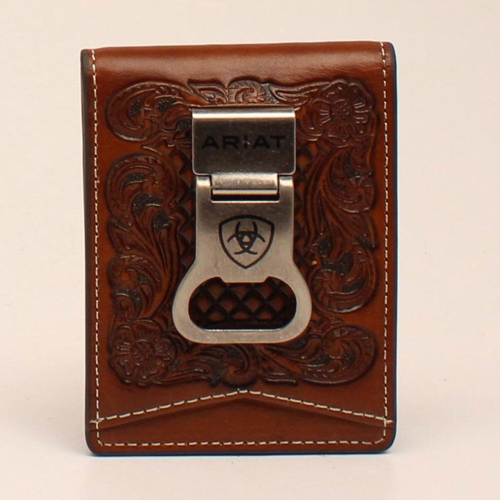 This Ariat leather bifold money clip wallet by M&F Western Products is made of genuine leather and features...