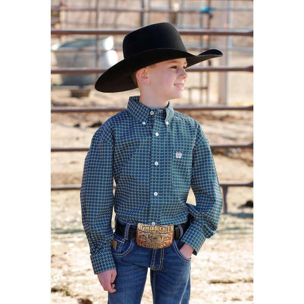 Cinch Boys' Long Sleeve Western Button down Shirt in Blue Print Boys' Western shirt Long sleeve Button down...