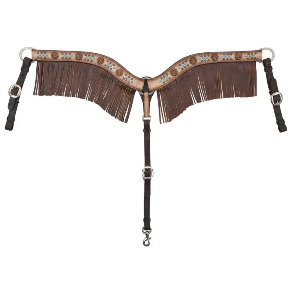 Circle Y Dakota Pinwheel Breast Collar Textured cream faux exotic leather Copper Pinwheel Conchos Turquoise and copper spots...