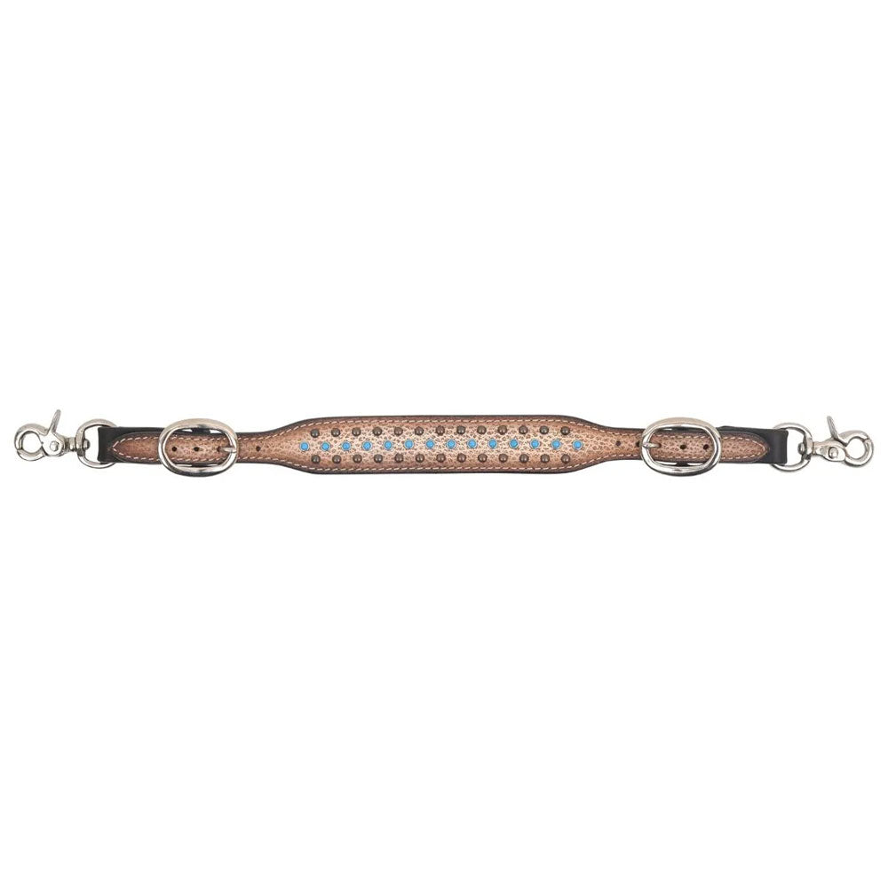 Circle Y Turquoise Roundup Wither Strap Features natural and turquoise braided rawhide buttons Antique copper rope edge conchos...