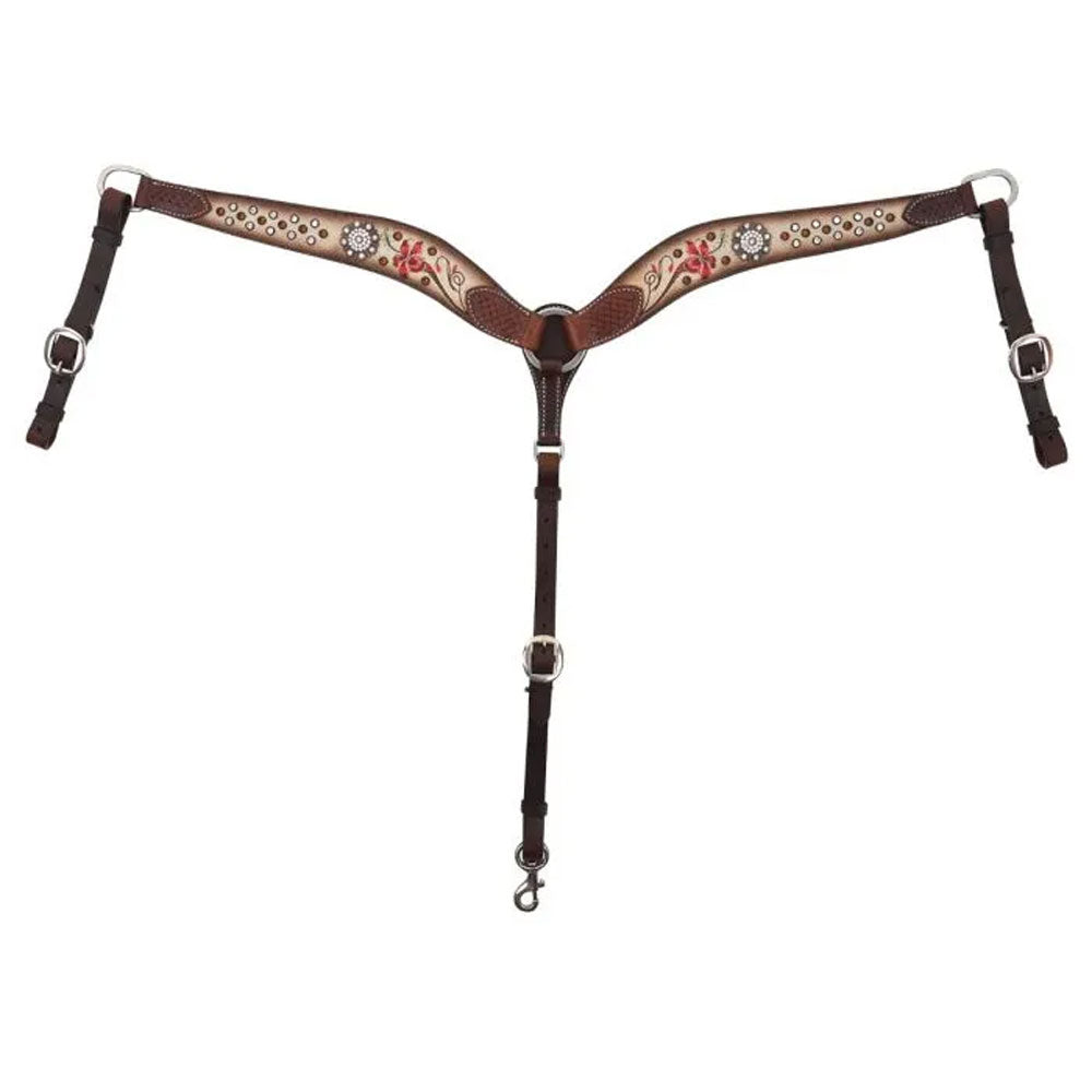 Circle Y Sunset Southwestern Beaded Breast Collar Horse size Distressed leather Rustic beaded inlay Stainless steel hardware Matches...