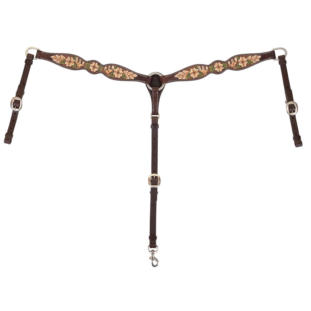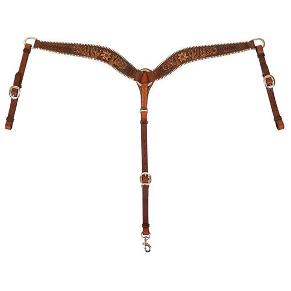 Circle Y Straight Floral Tooled Breast Collar/Breast Strap in Regular Oil 1 ½” Straight Floral tooling Stainless steel...