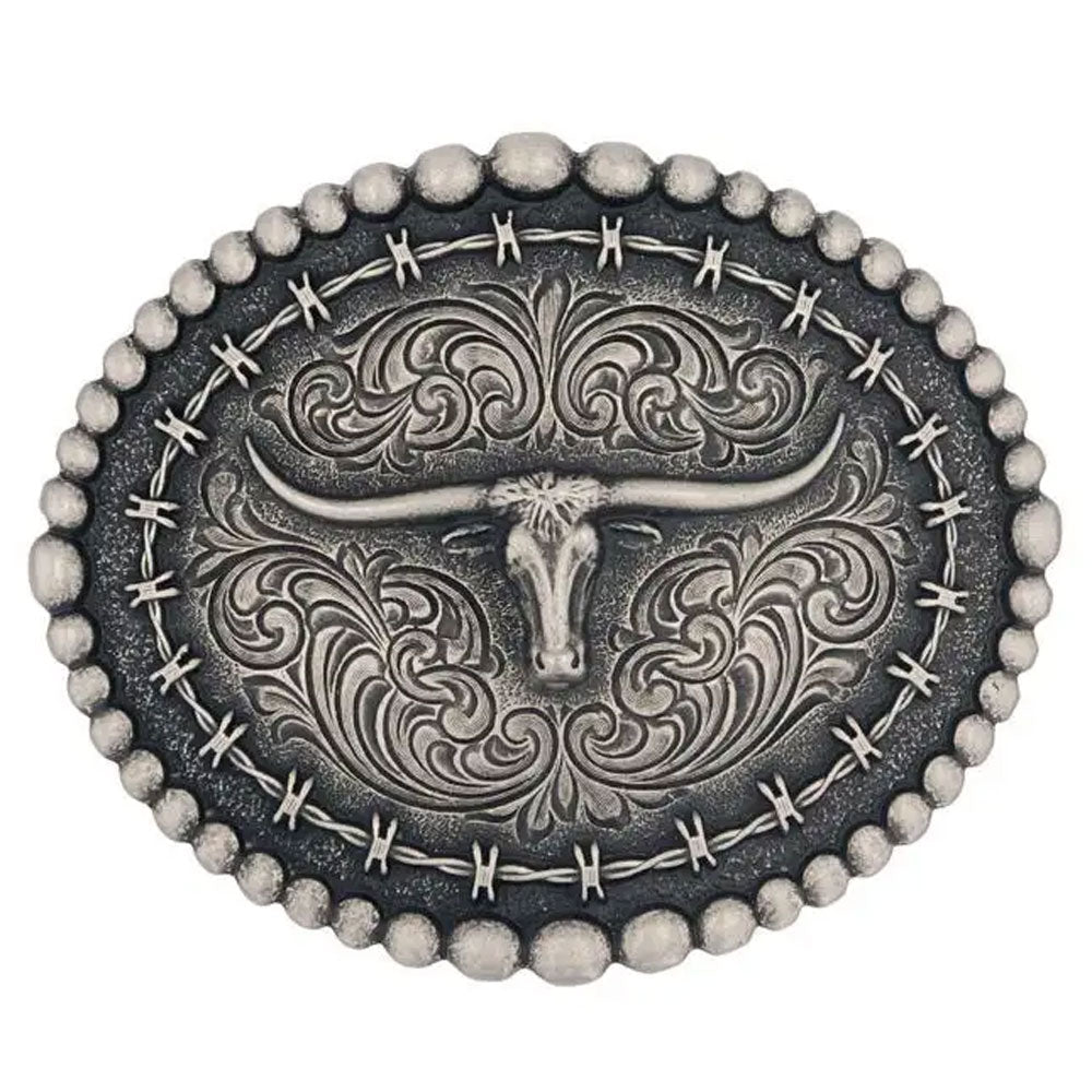 Experience true western style with the Branded Legacy Longhorn Attitude Buckle. This buckle features a roped border with...