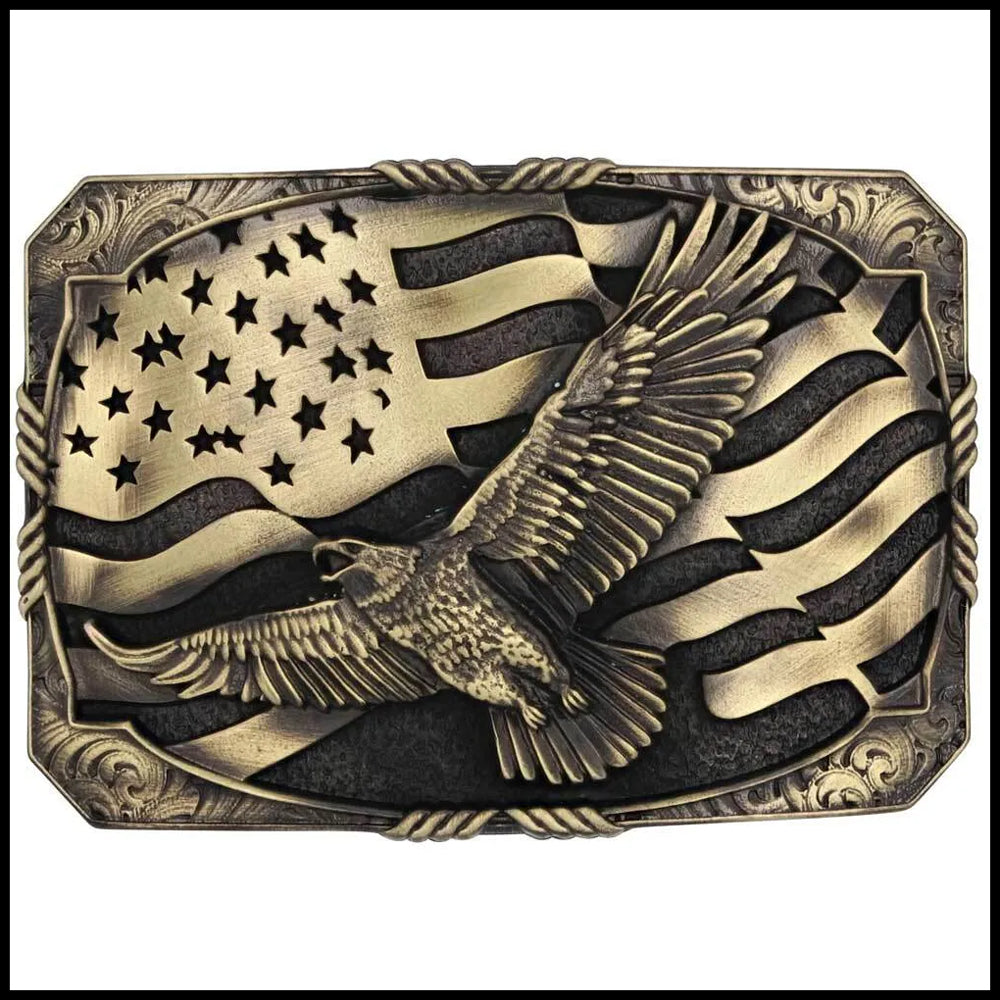 Express your freedom with this Soaring Freedom Buckle This buckle features a majestic eagle in the top right...