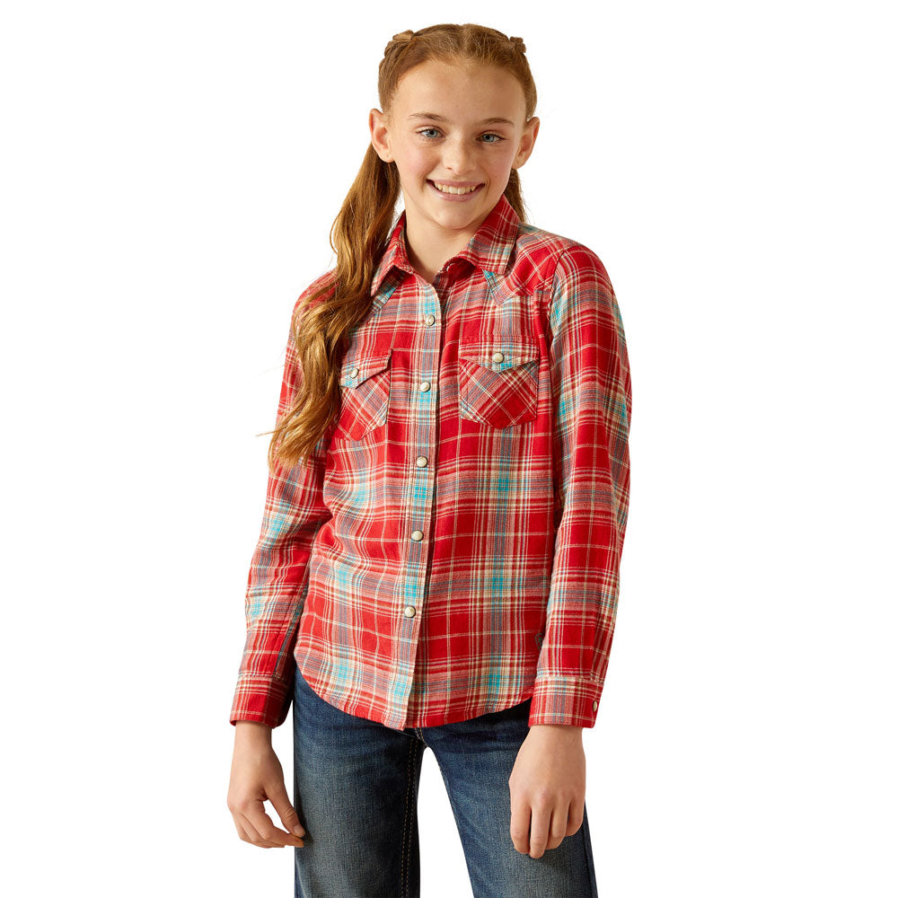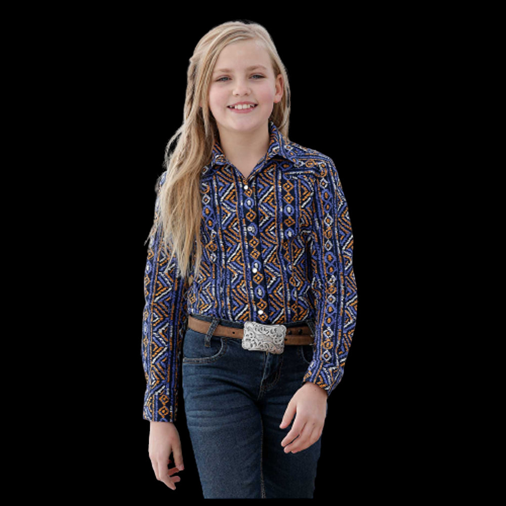 Ariat Girls' Team Kirby Shirt in Prism Pink Long sleeve Spread collar Button front and cuffs Pink buttons...