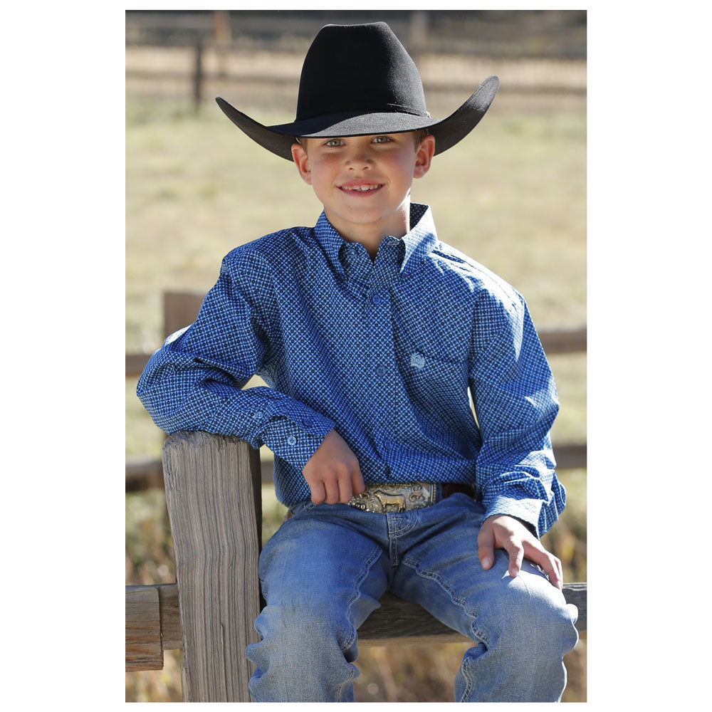 Cinch Boys Long Sleeve Button-down Western Shirt in Black Print Boys Western Shirt Long sleeve Button down collar...