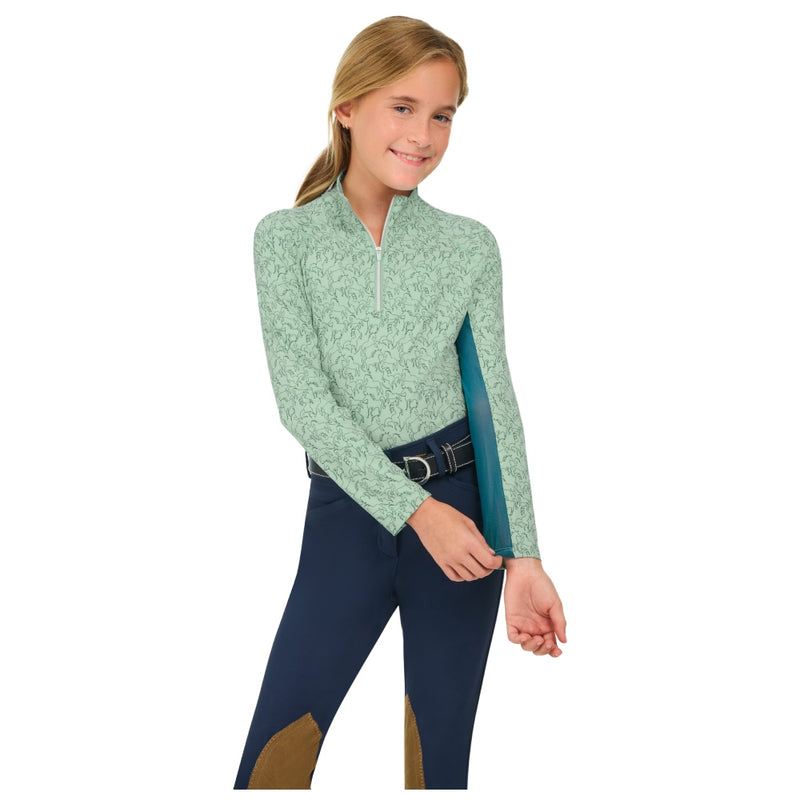 LBJ843 RJ Classics Girls Libby Jr Quarter Zip Schooling Shirt - Green Paddock Play Print