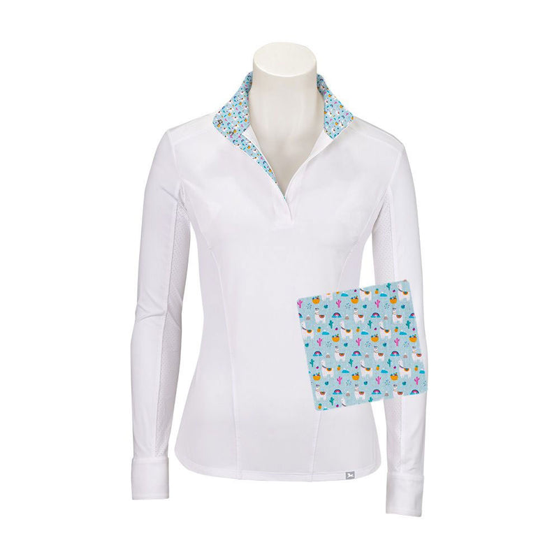 RJ Classics Tori Jr Long Sleeve Show Shirt - White with LLAMAS. R.J. Classics Tori Jr. Long Sleeve Show Shirt is designed to elevate both style and performance in the show ring.