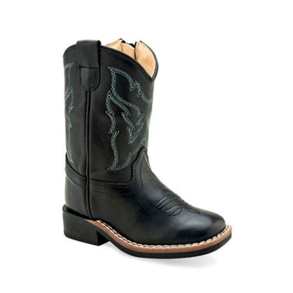 Old West Toddler Black Square Toe Leather Cowboy Boots with Zipper