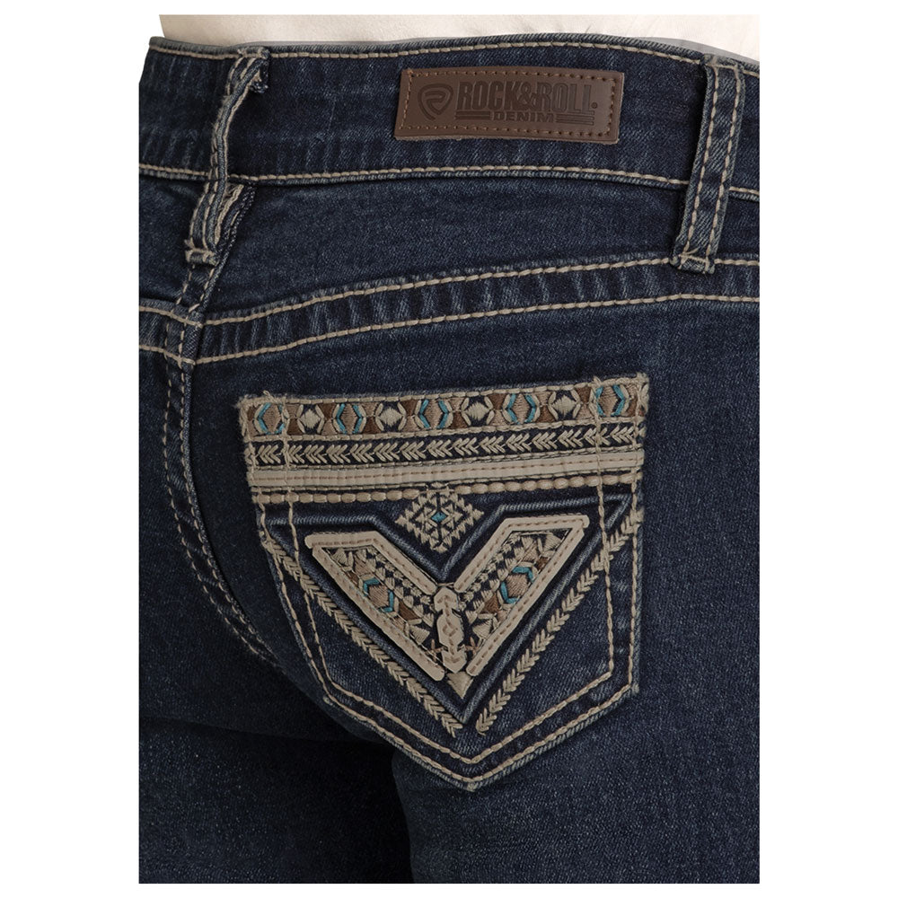 BG4MD08058 Rock & Roll Girls' Aztec Embroidery Bootcut Jeans