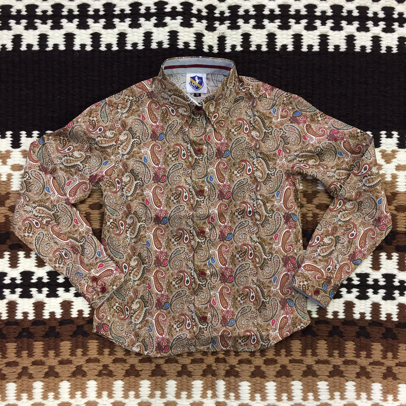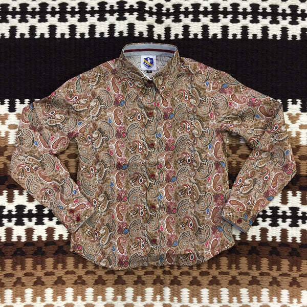 Royal Highness Girls Brown Paisley Button Down Western Show Top