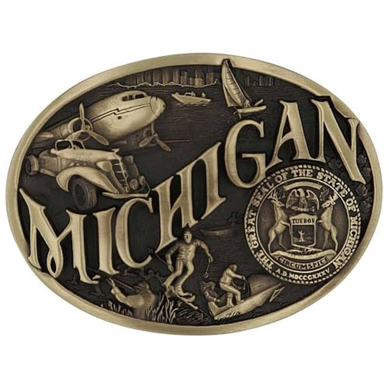 60811MIC Montana Silversmiths Michigan Brass Attitude Belt Buckle