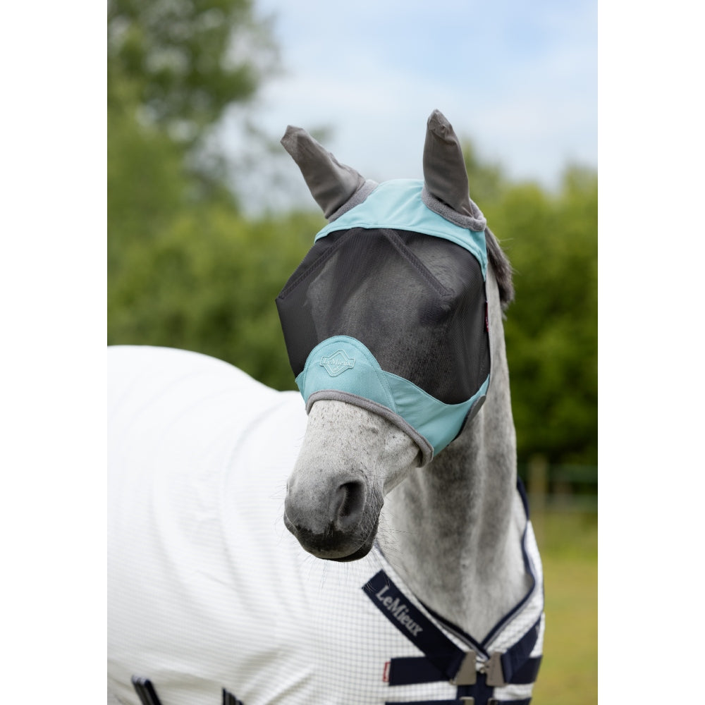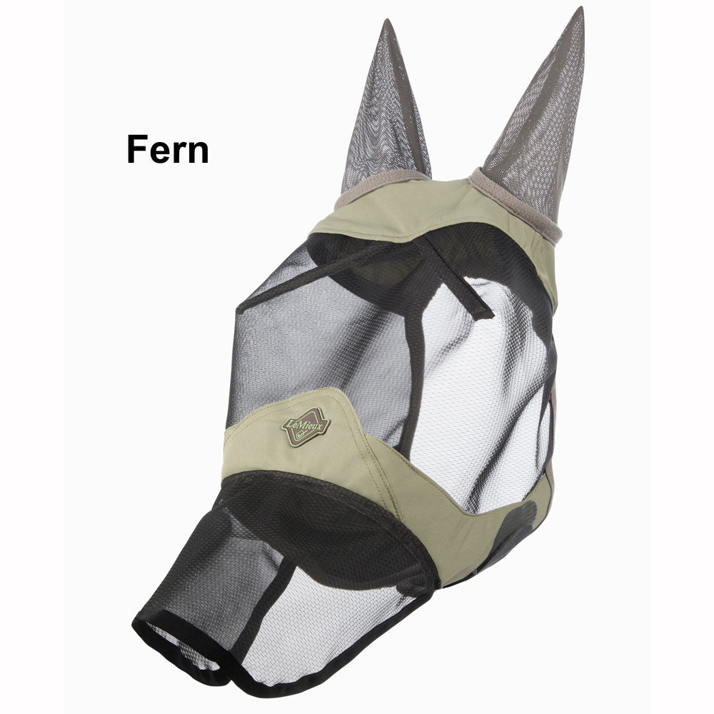LeMieux Visor-Tek Full Fly Mask in Fern Breathable black 70% UV protective mesh The black UV protective mesh...