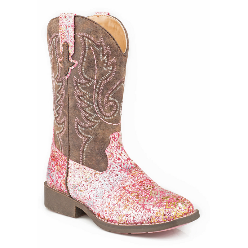 09-018-1225-2062 Roper Children's Pink Southwest Glitter Square Toe Cowboy Boots