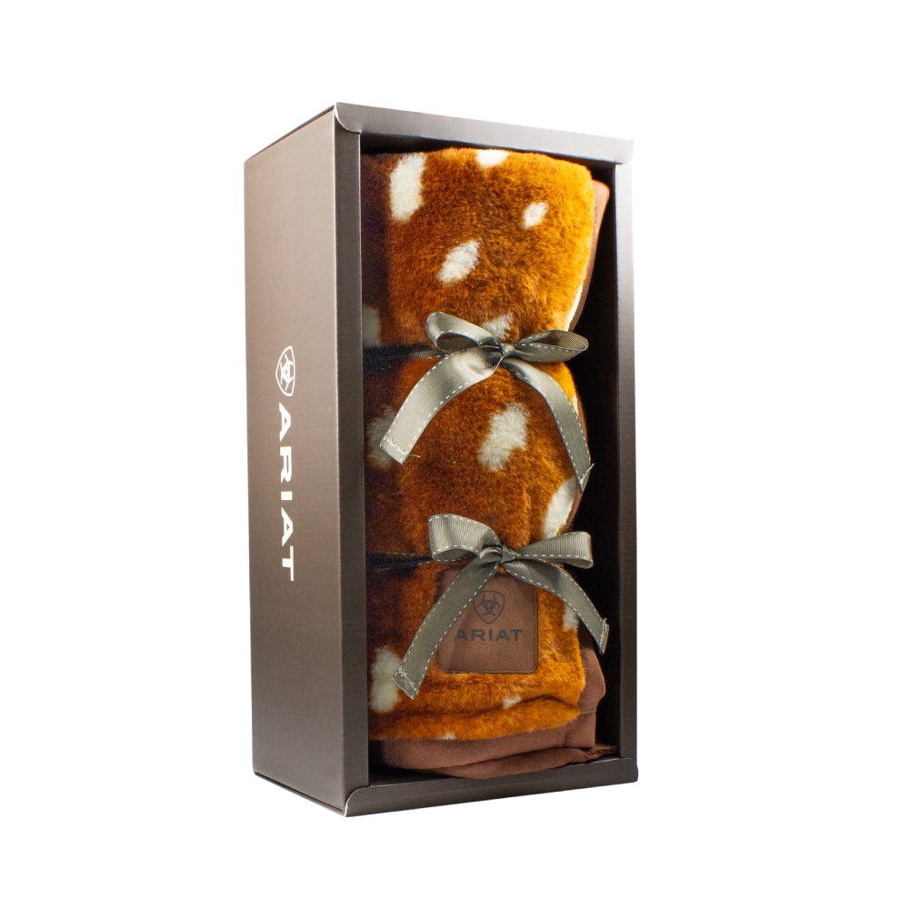 Ariat Snuggle Throw Blanket in Antelope. Designed to complement Ariat's incredibly soft Snuggle Slippers, this blanket is a luxurious addition to your cozy relaxation ritual.