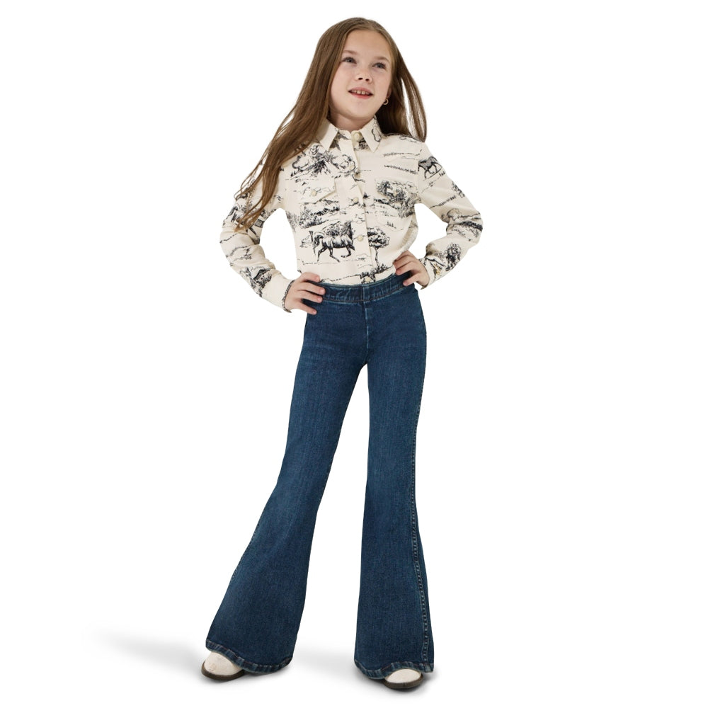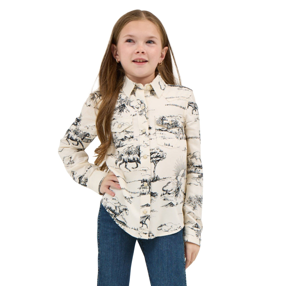 Wrangler Girls' Western Long Sleeve Snap Shirt in White Print Girls' Western shirt Long sleeve Spread collar Snap...