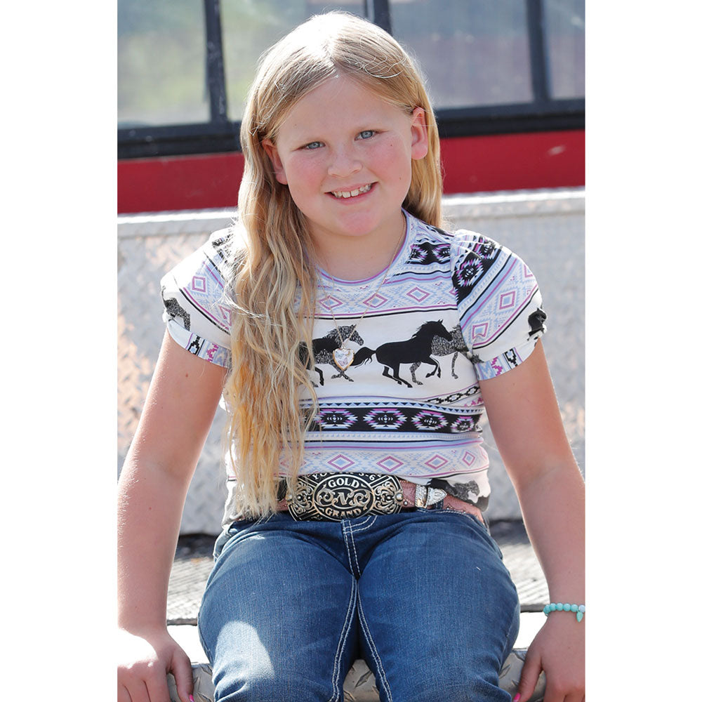 Ariat Girls' Wild Like the West Short Sleeve Natural T-Shirt Girls' tee Short sleeve Crew neck Screen printed graphic...