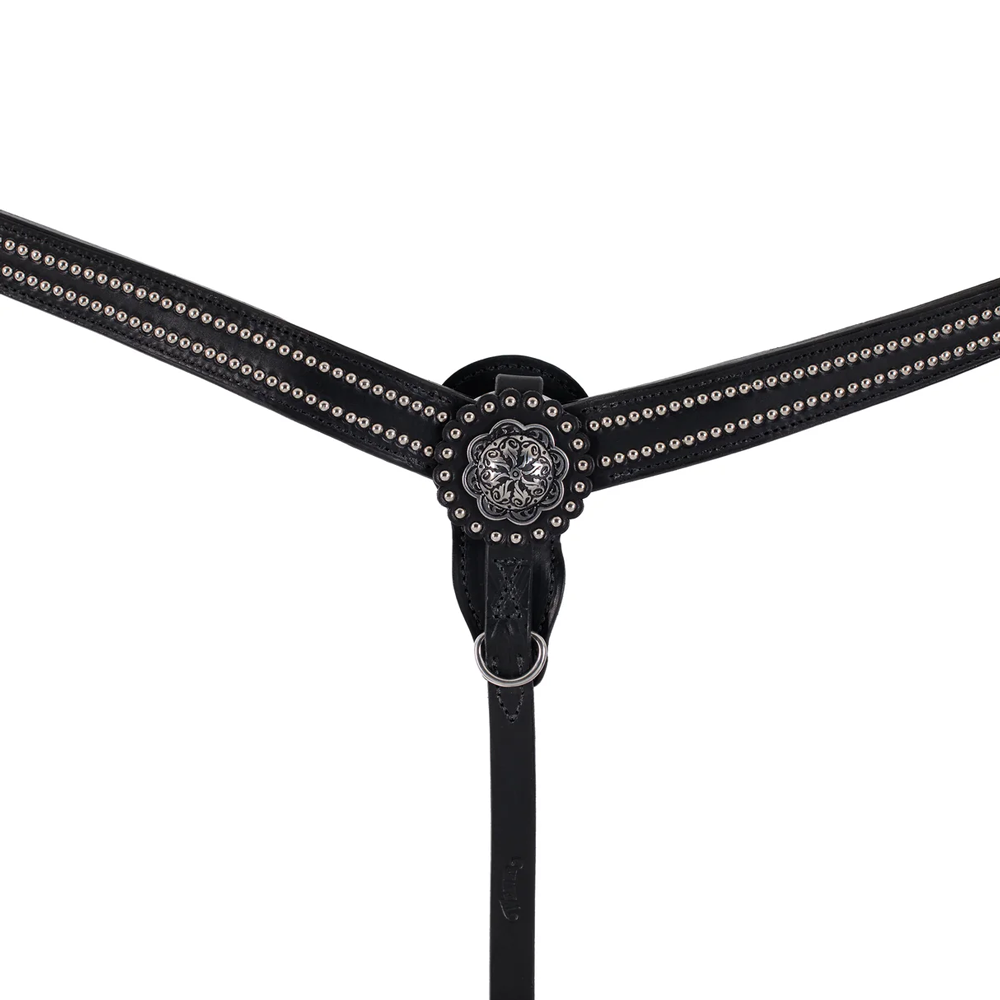 Weaver Back in Black Tapered Breast Collar. Gorgeous Black Leather with studs and Center Concho.