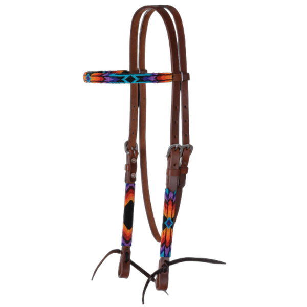 Circle Y Flat Infinity Wrap Beaded Western Headstall Regular Oil in Sunset Beaded Pattern.