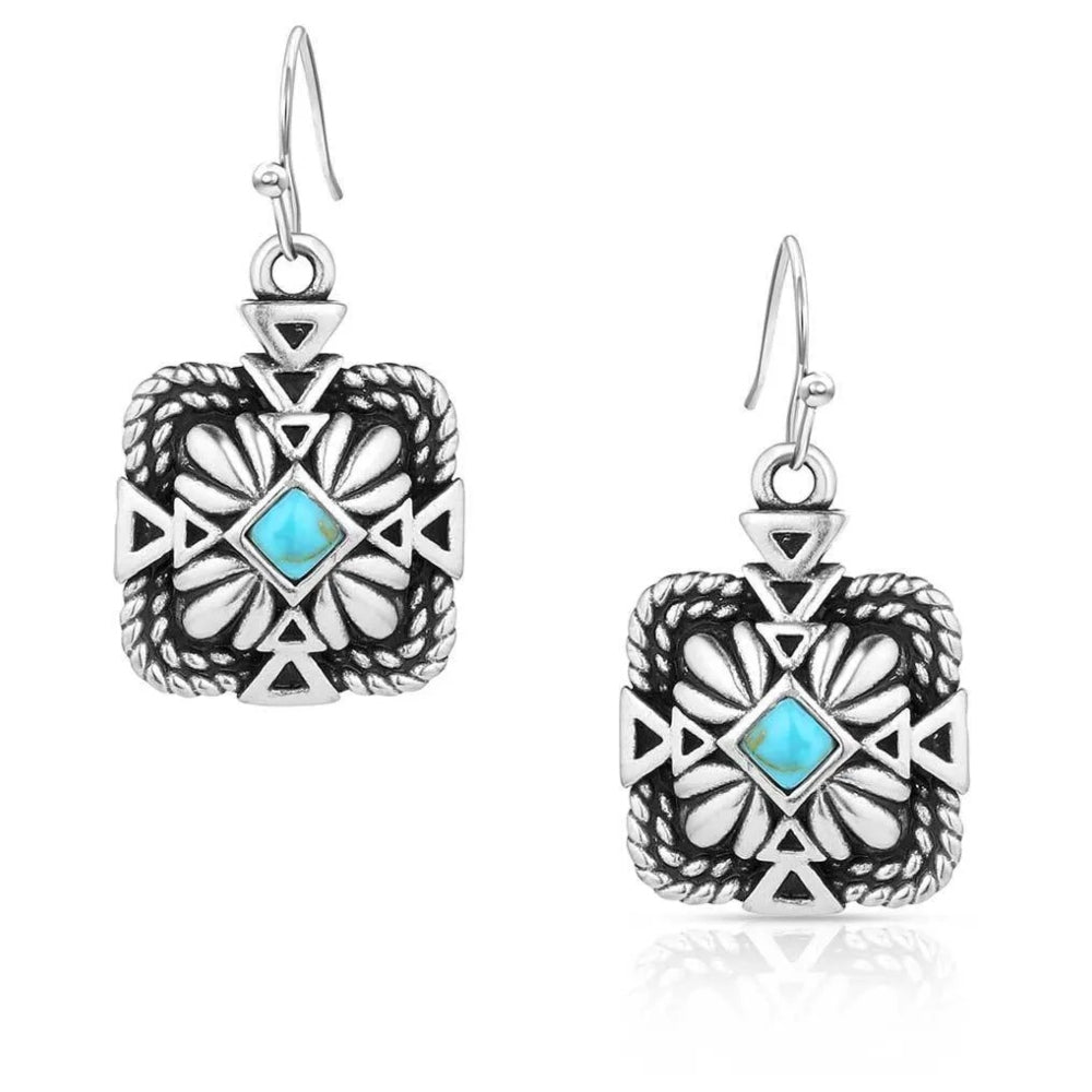 Montana Silversmiths Cowgirl Credo Earrings. Bold curves and striking turquoise stones define the Cowgirl Credo Earrings. Width: 0.5...