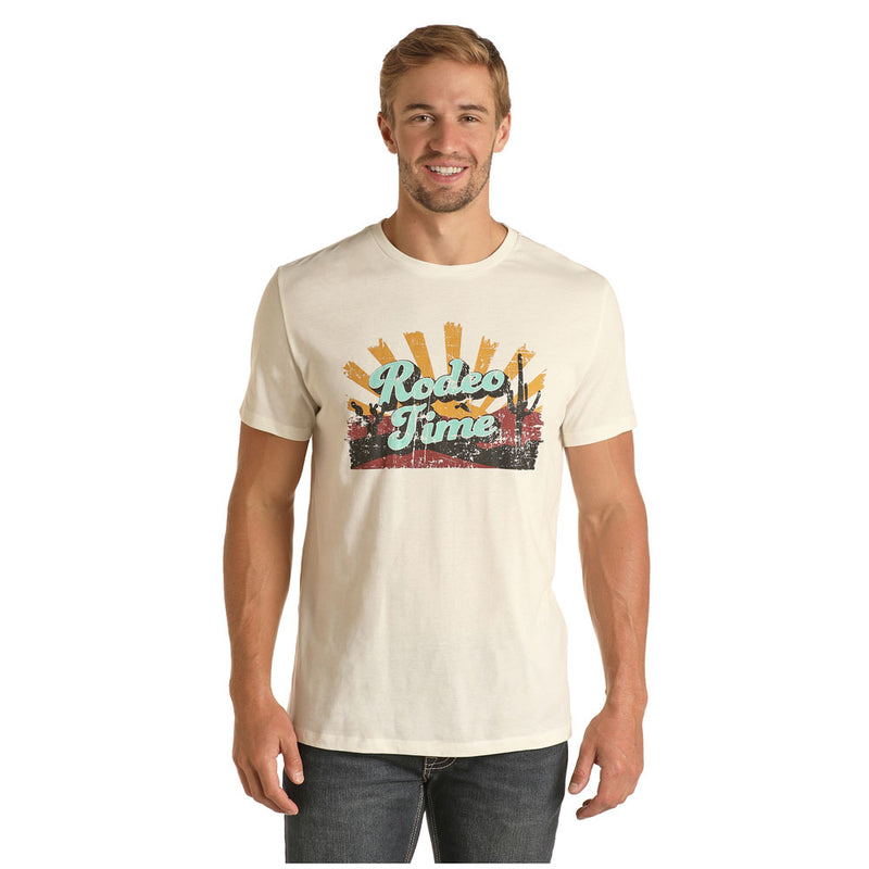 P9-3367 Rock & Roll Men's Dale Brisby Rodeo Time Short Sleeve Tee Cream