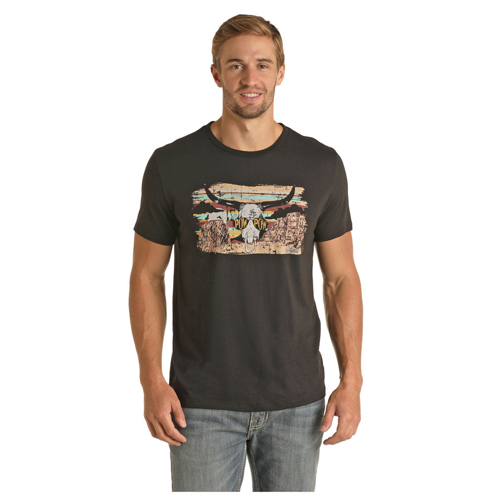P9-3361 Rock & Roll Men's Dale Brisby Pow Pow Short Sleeve Tee Black
