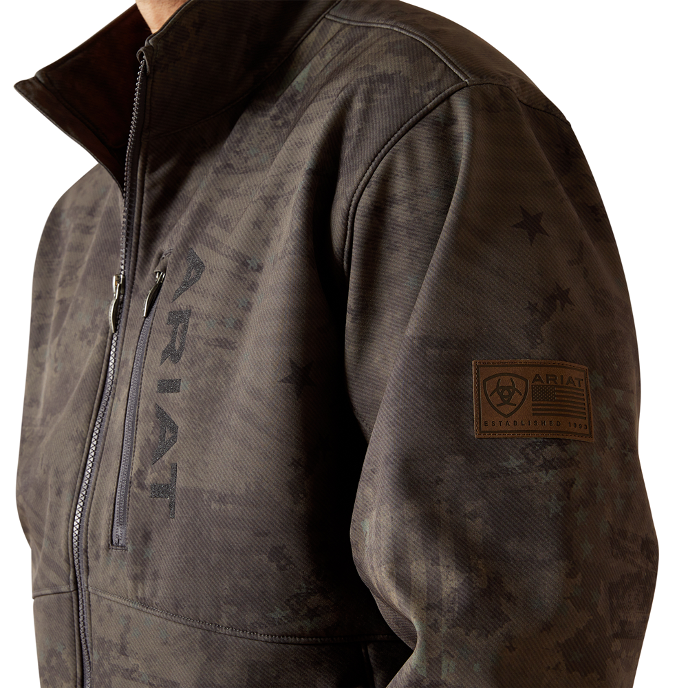 Ariat Men's Patriot Flag Softshell Jacket in Phantom. Perfect for everyday wear with a familiar, easy fit