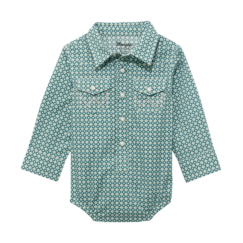 Wrangler Baby Boy Long Sleeve Western Bodysuit in Turquoise