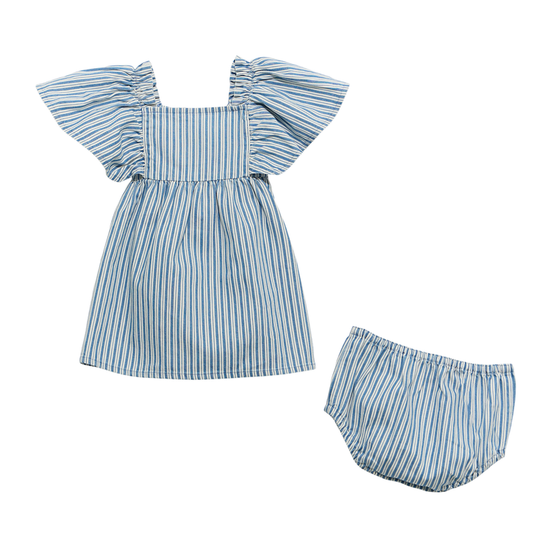 Wrangler Baby Girl Denim Dress Set in Blue Stripe