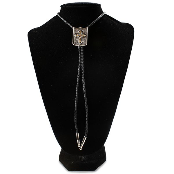 Double S Bolo Tie Shield Cross