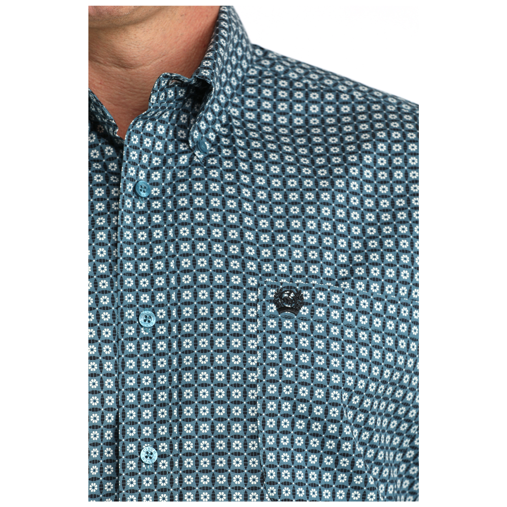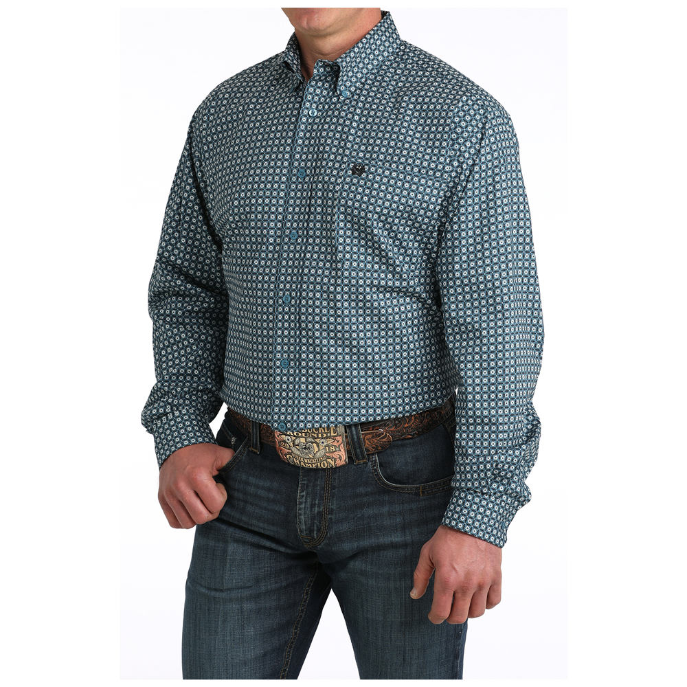 Cinch Men's Long Sleeve Button Down Western Shirt in Blue Print