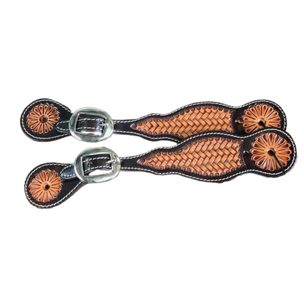 Professional's Choice Basketweave Sunflower Buckle Spur Strap Genuine leather Basketweave and floral tooling Chrome hardware Sold in pairs...