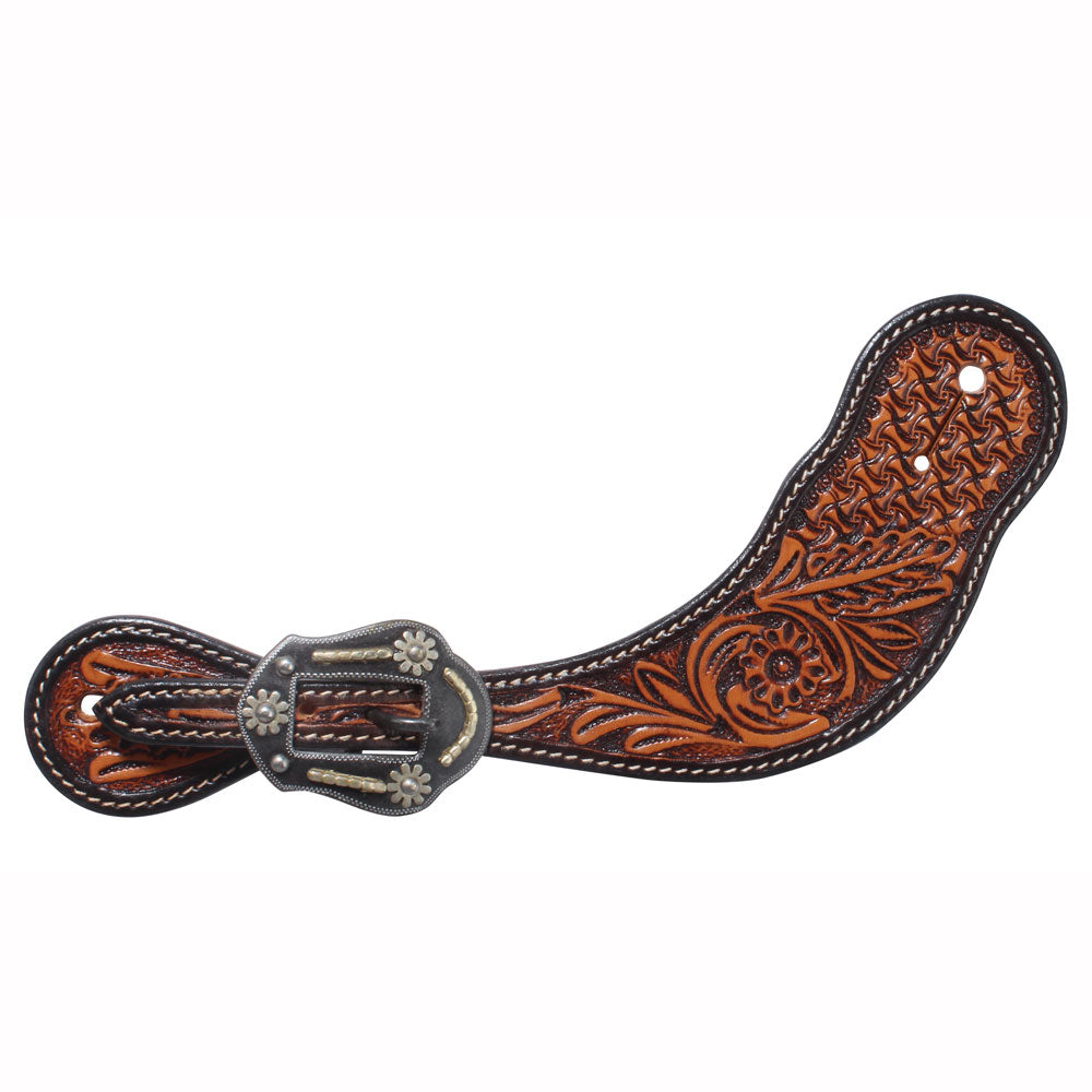 Professional's Choice Youth Buckstitched Filigree Spur Strap Buckstitched filigree spur straps Natural floral tooling Cutouts of cream colored...