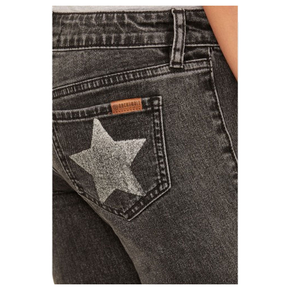 BG6PD05337 Rock & Roll Girls' Star Print Flare Jean - Charcoal