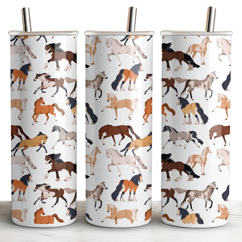 Black Stallion Designs 20oz Horse Tumbler - Horses All Over