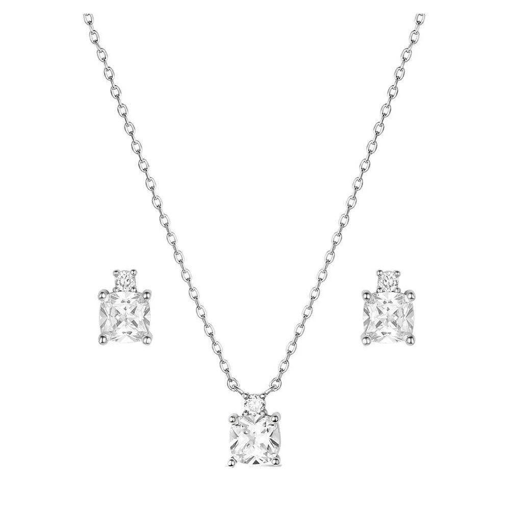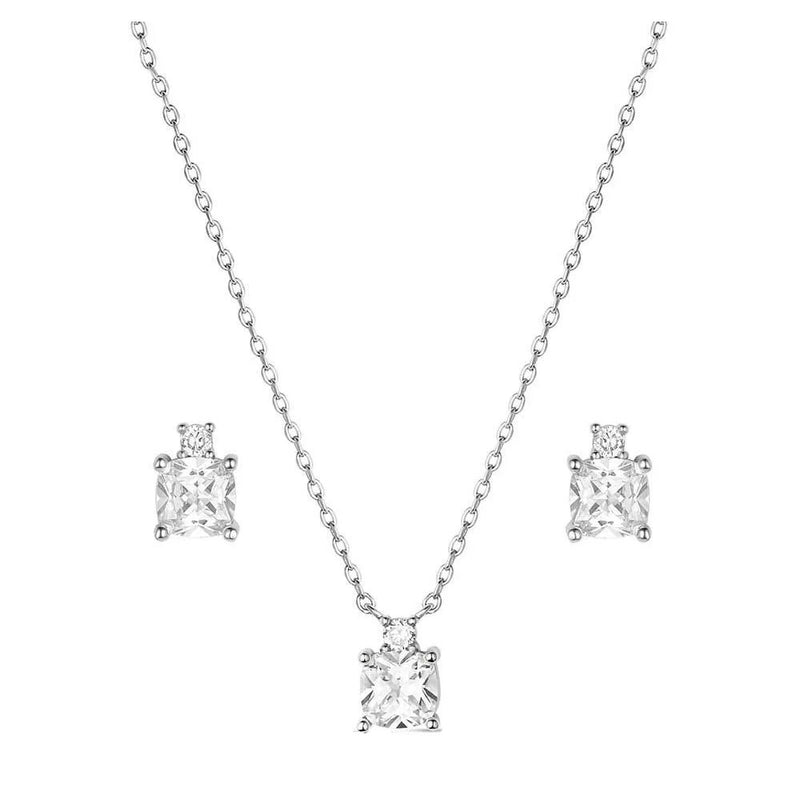 - Adorned with dazzling square cut clear cubic zirconia crystals, this set adds a touch of refined glamour to any outfit.
