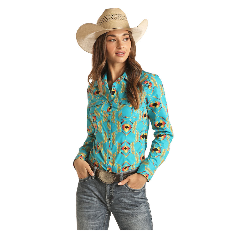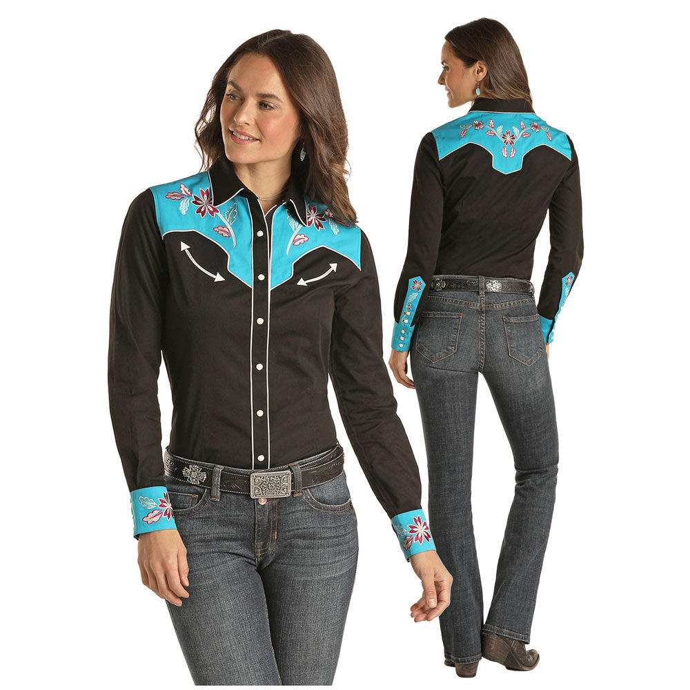 Rock & Roll Denim Women's Dale Brisby Long Sleeve Western Snap Shirt. , Long sleeve Snaps Two snap...
