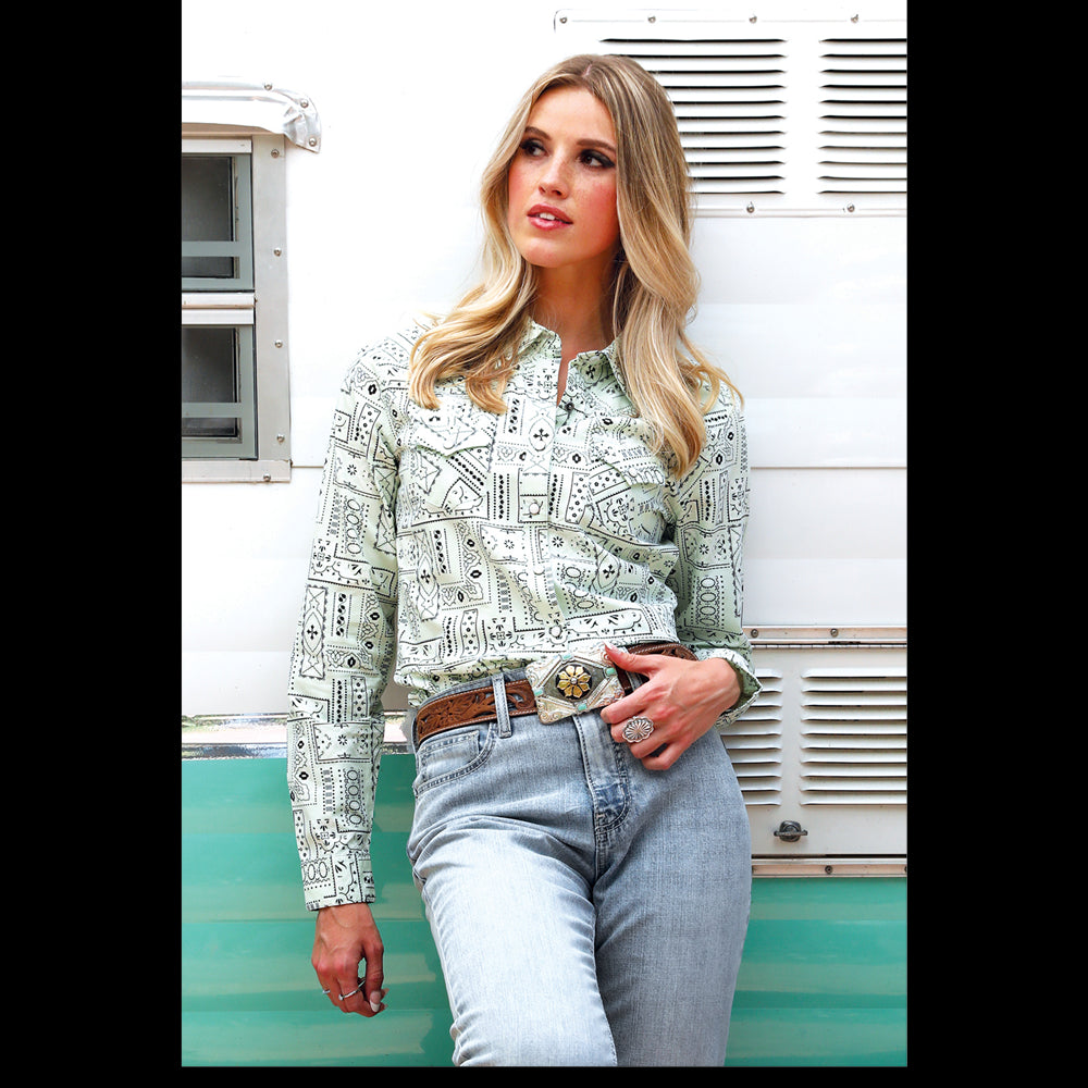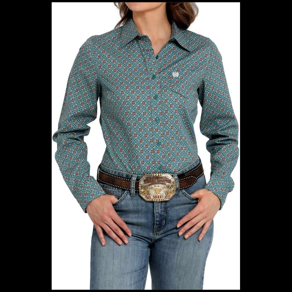 Cinch Women's Long Sleeve Western Button down Shirt in Blue Paisley Women's Western shirt Long sleeve Button down...