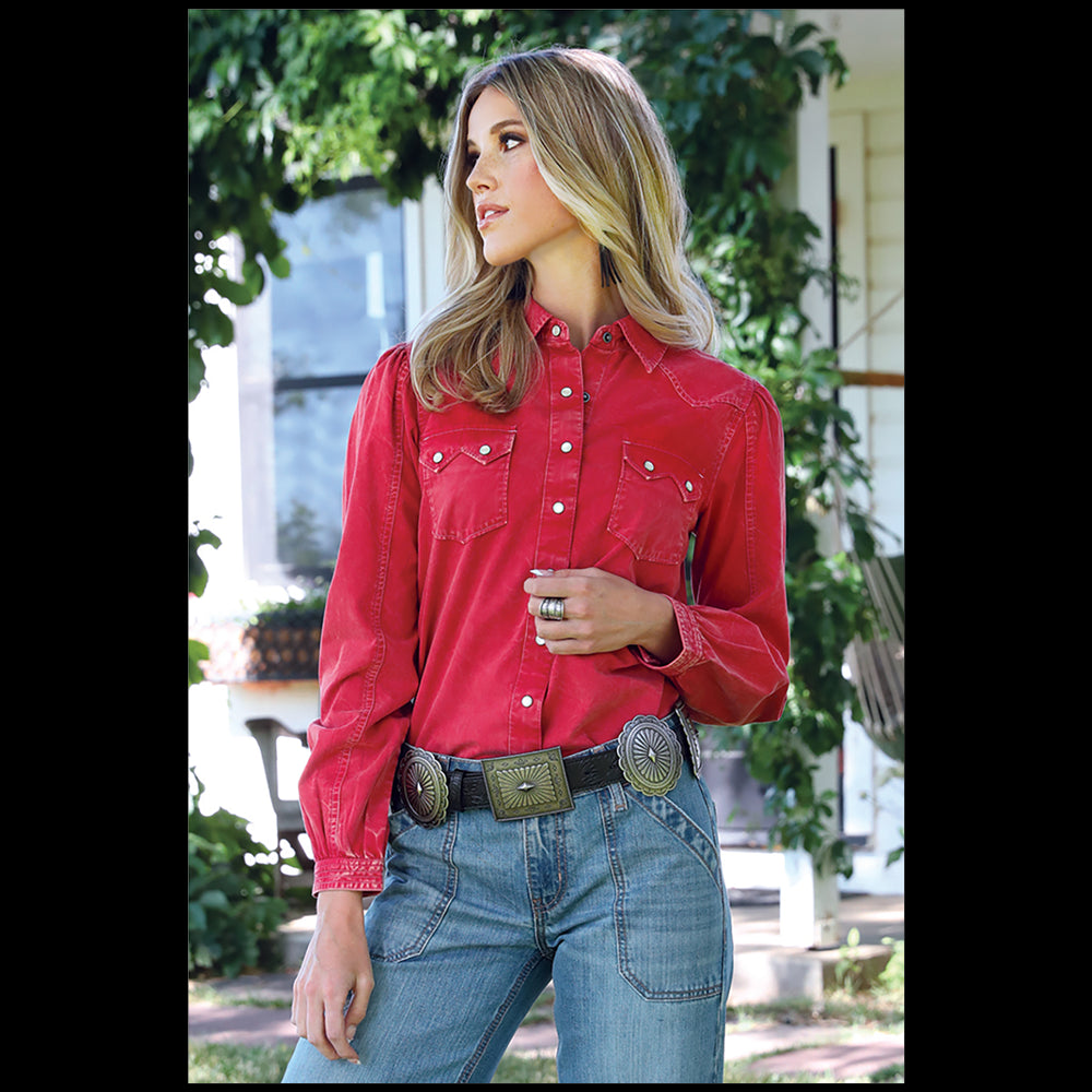Cruel Girl Women's Long Sleeve Western Snap Shirt in Burgundy Stripe Women's Western shirt Long sleeve Spread collar...