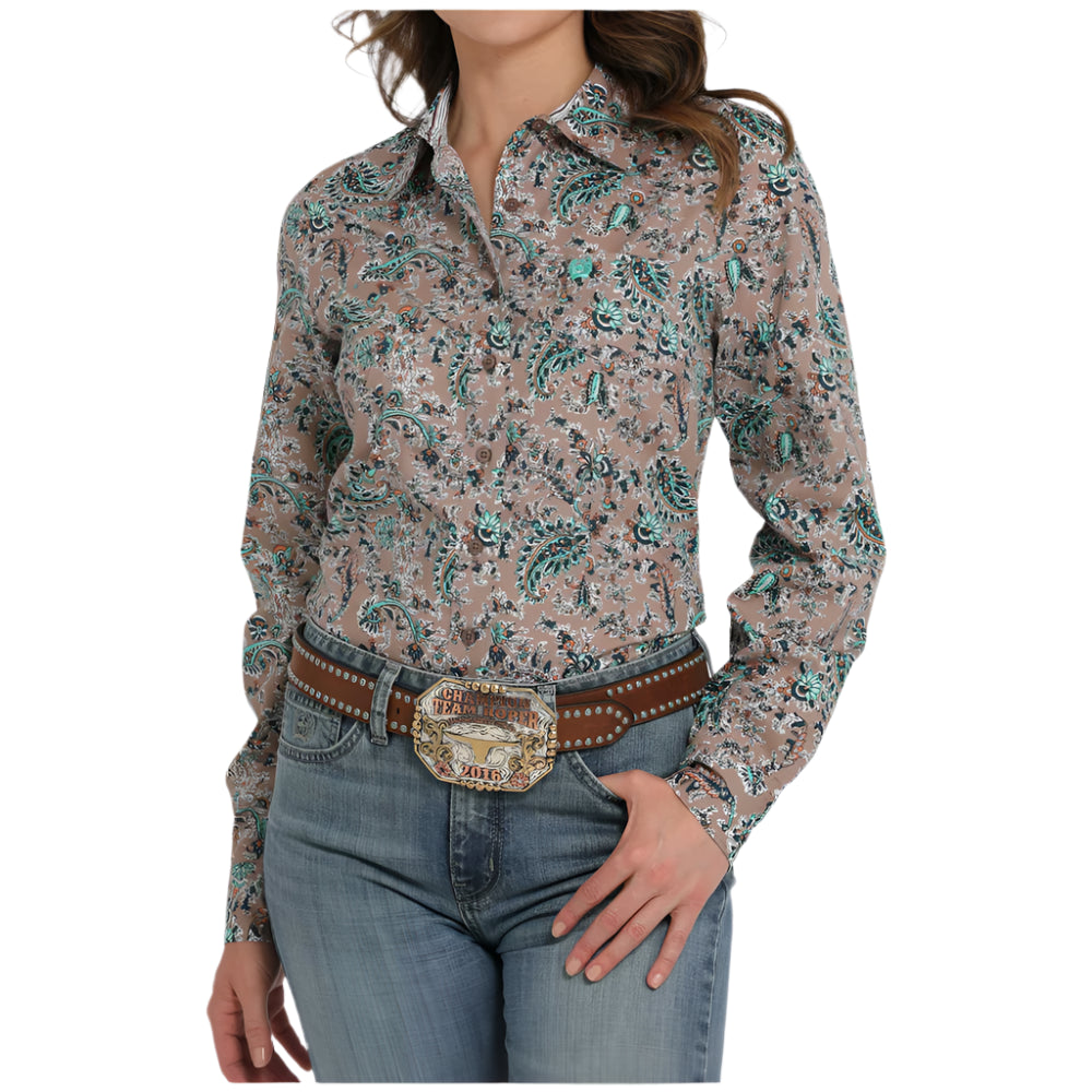 Cinch Women's Long Sleeve Button Up Western Shirt in Multicolor Paisley Women's Western shirt Long sleeve Button front...