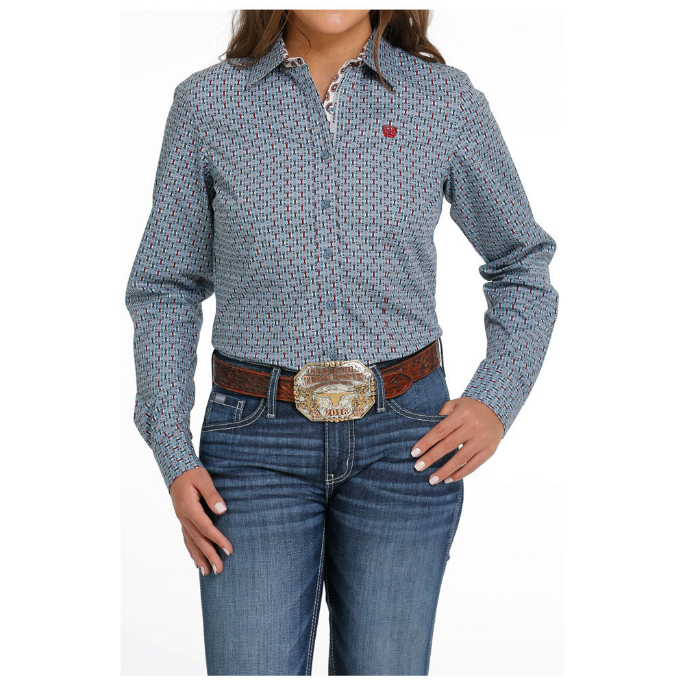 Cinch Women's Long Sleeve Western Button down Shirt in Blue Women's Western shirt Long sleeve Button down style...